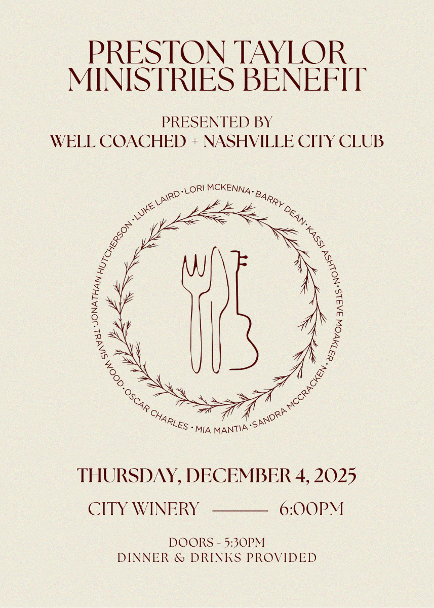 Celebrate the most wonderful time of the year at Preston Taylor Ministries' 13th Annual Benefit Concert, featuring inspiring performances by Creative Nation's Luke Laird, Barry Dean, Lori McKenna, Kassi Ashton, Steve Moakler, Travis Wood, Jonathan Hutcherson, Sandra McCracken, Mia Mantia, and Oscar Charles! Dinner, drinks and music are provided and all proceeds benefit PTM.